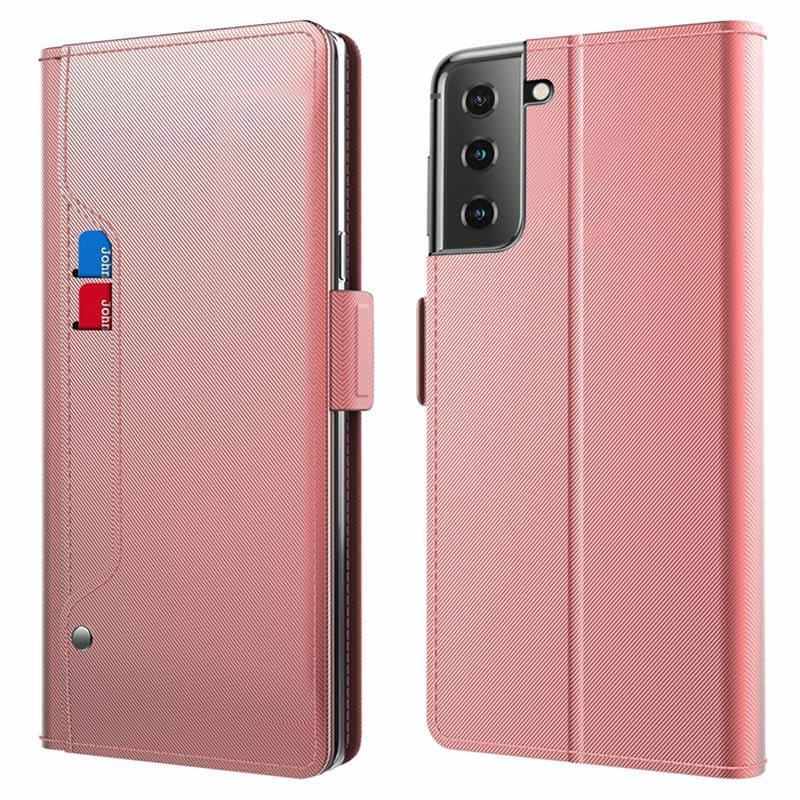 Bolsa Tipo Flip com Espelho de Maquilhagem para Samsung Galaxy S23 5G - Rosa dourado