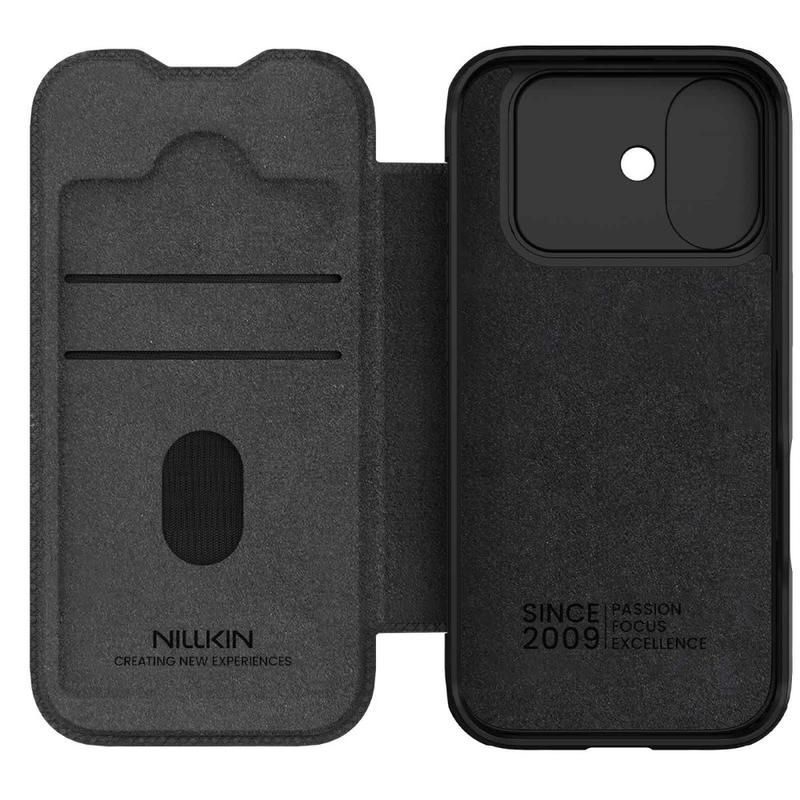 - Bolsa flip da série Qin Pro para o iPhone 17, fabricada pela Nillkin