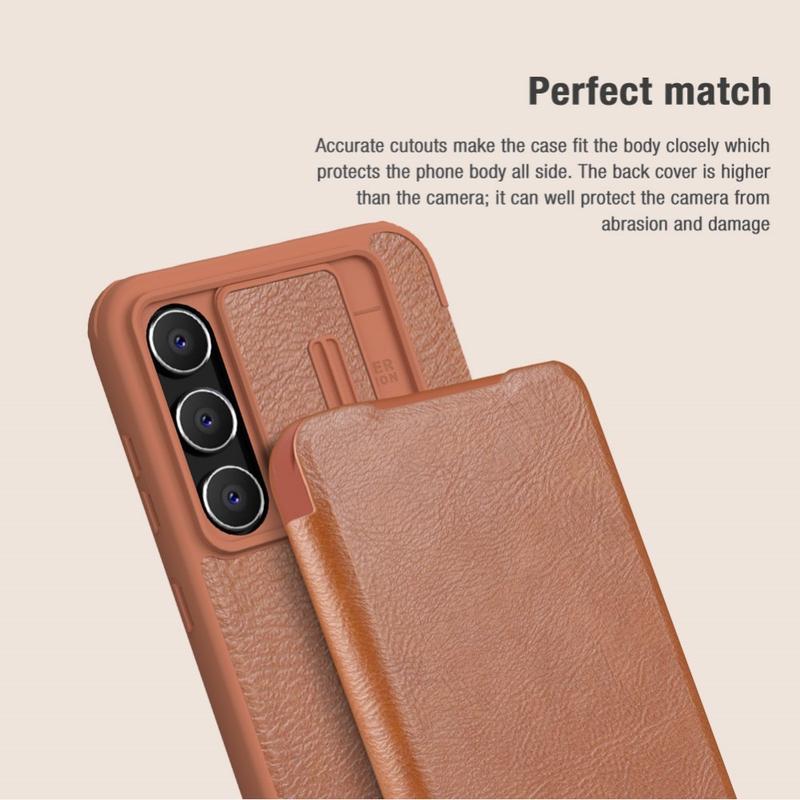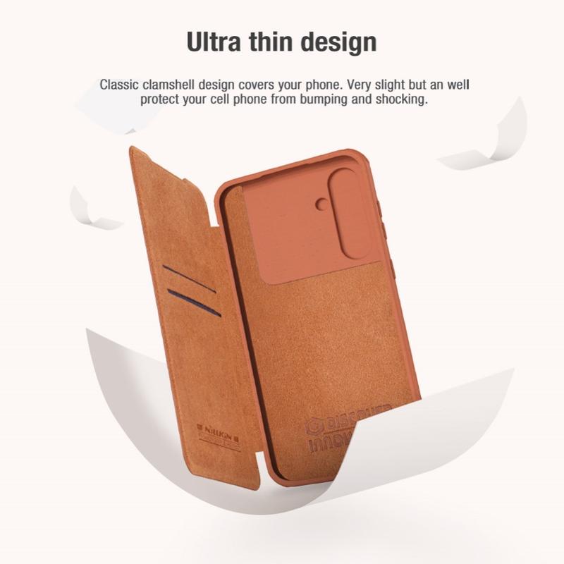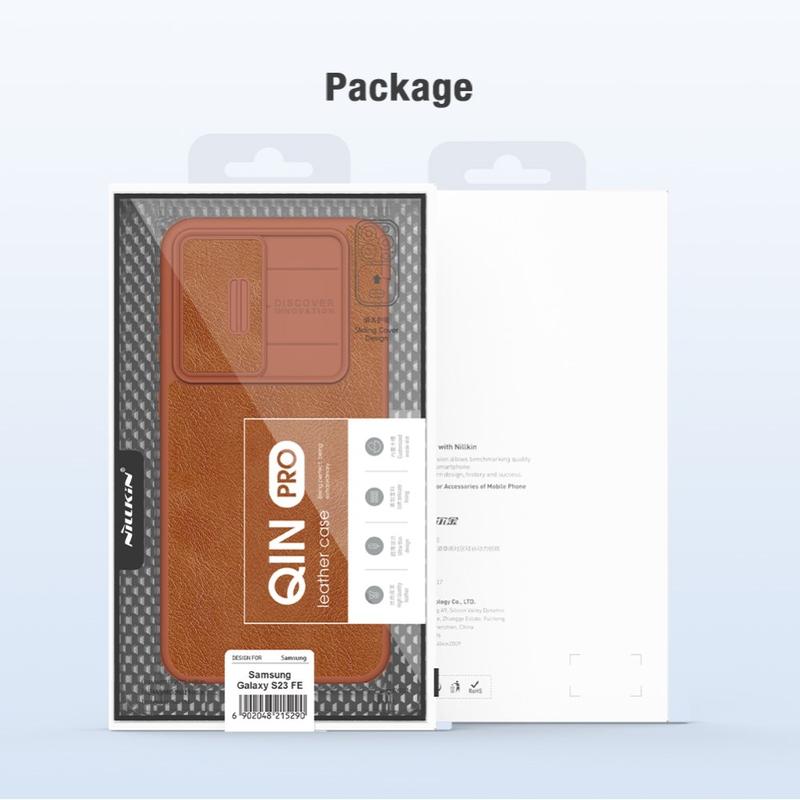 - Bolsa flip da série Qin Pro para o Samsung Galaxy S23 FE, fabricada pela Nillkin