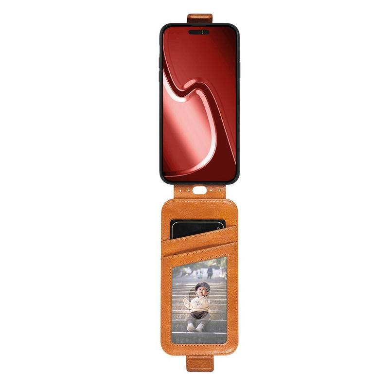 - Elegante bolsa flip vertical com fecho-éclair para iPhone 16 Pro