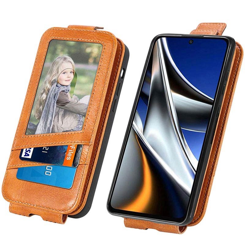 Esta bolsa tipo flip vertical escuda completamente o Xiaomi Poco X4 Pro 5G e tem um compartimento com fecho-éclair!