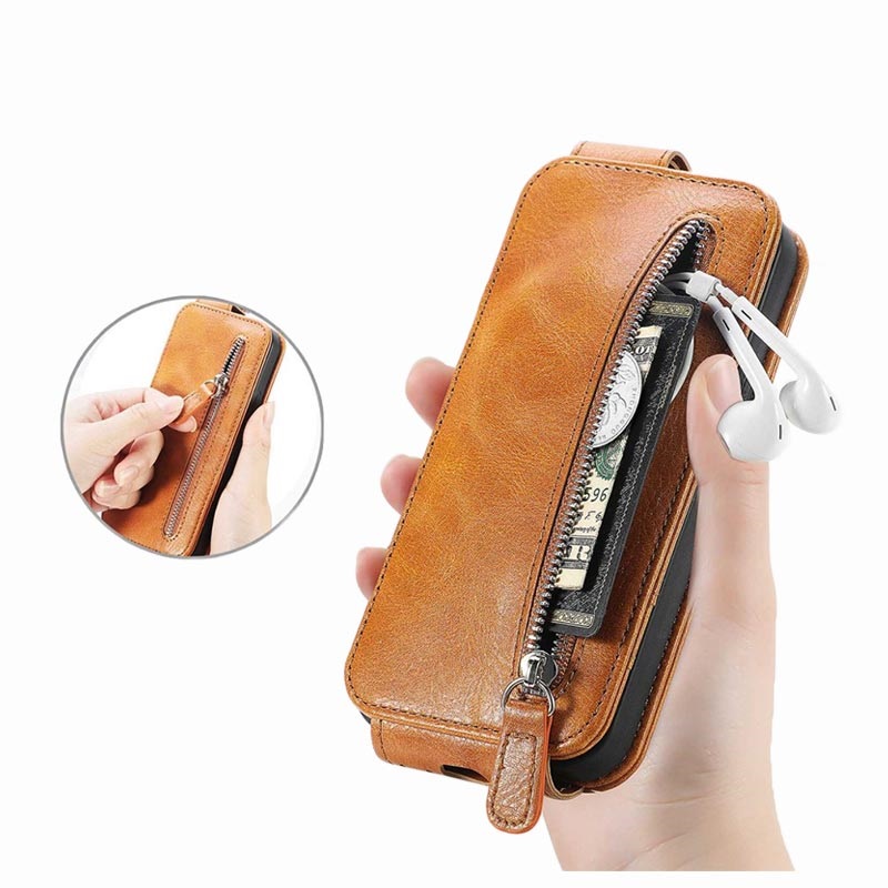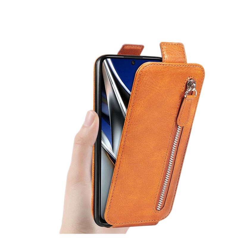 - Elegante bolsa flip vertical com fecho-éclair para Xiaomi Poco X4 Pro 5G