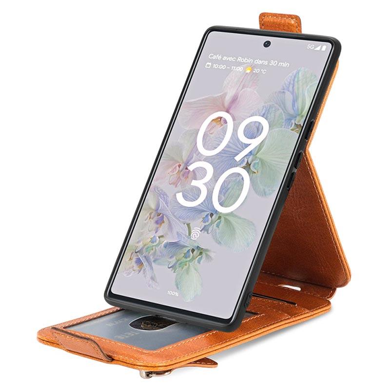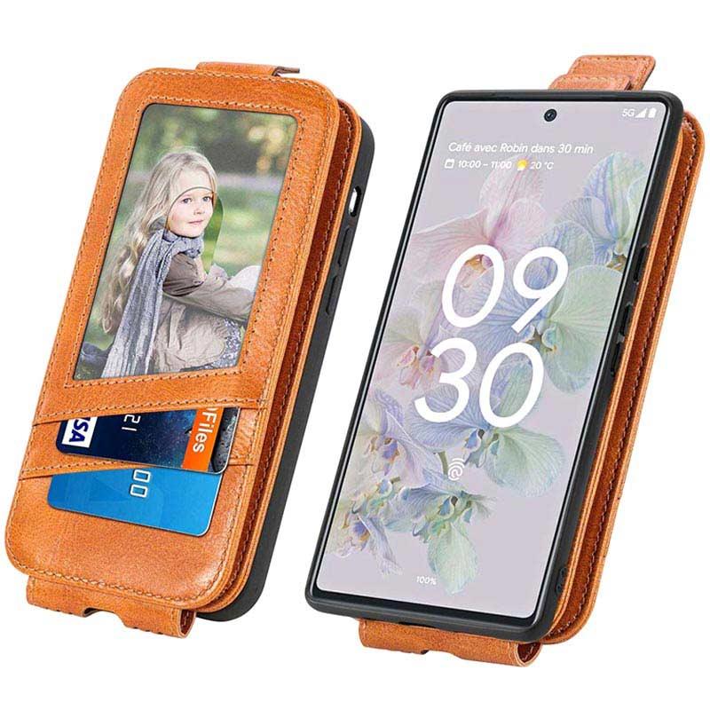 - Elegante bolsa tipo flip vertical com fecho-éclair para Google Pixel 6a