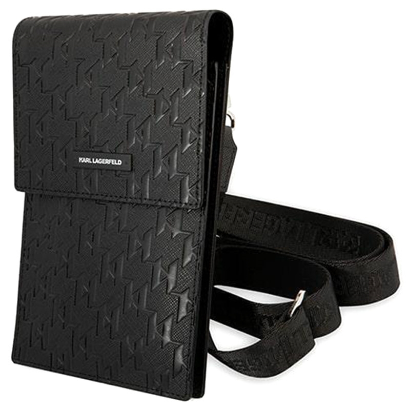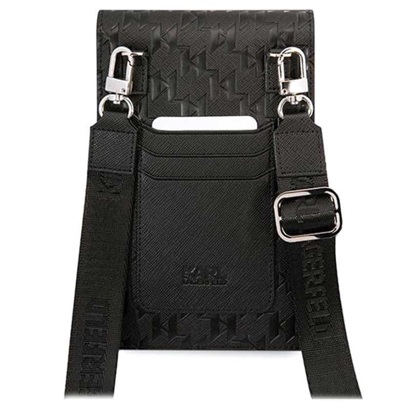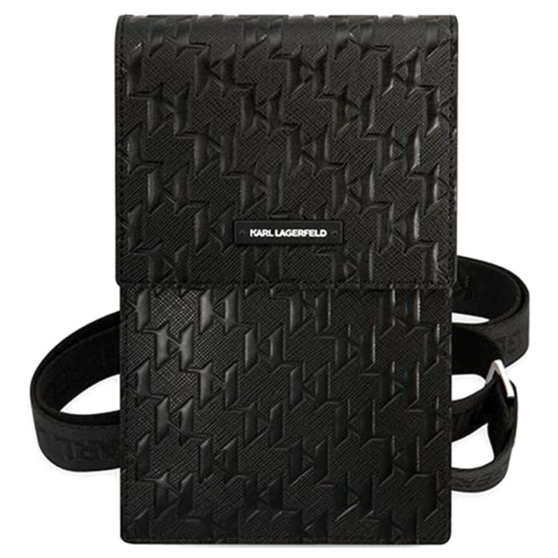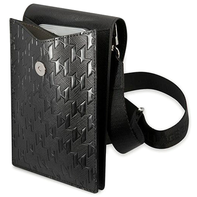- A bolsa de ombro Karl Lagerfeld para smartphones é feita de poliuretano