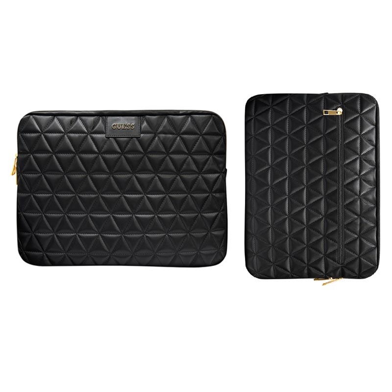Cubra e proteja seu laptop em qualquer lugar que você vá com o estojo Guess Quilted. Um design excepcional, superfície texturizada e costura de qualidade feita de poliuretano. A parte interna é agradável e macia, para manter seu laptop intacto. Além disso, há um bolso menor na parte de trás, e ambos os bolsos são fechados com zíper de metal.