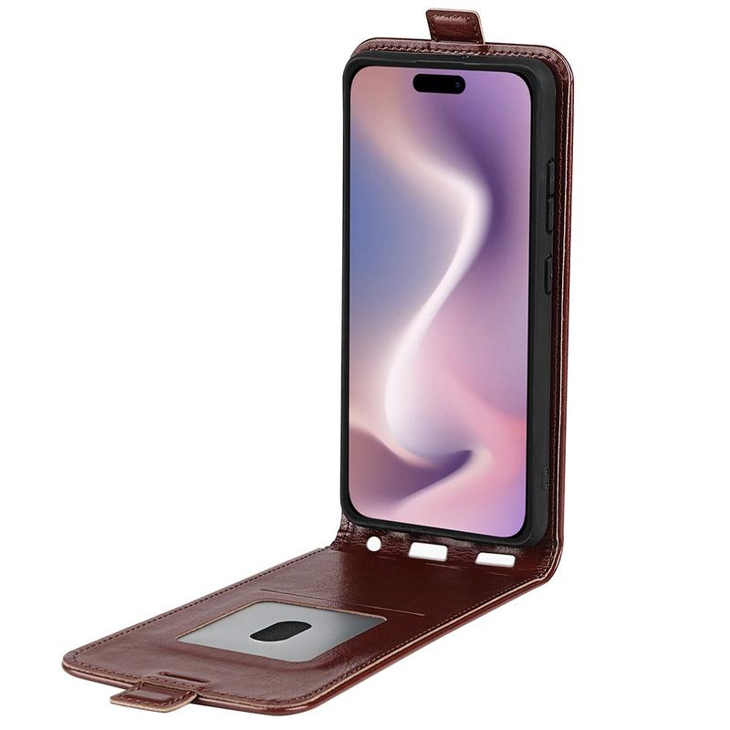 - Esta capa flip vertical de qualidade para iPhone 16 é feita de poliuretano e TPU