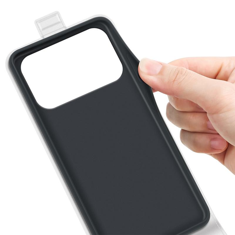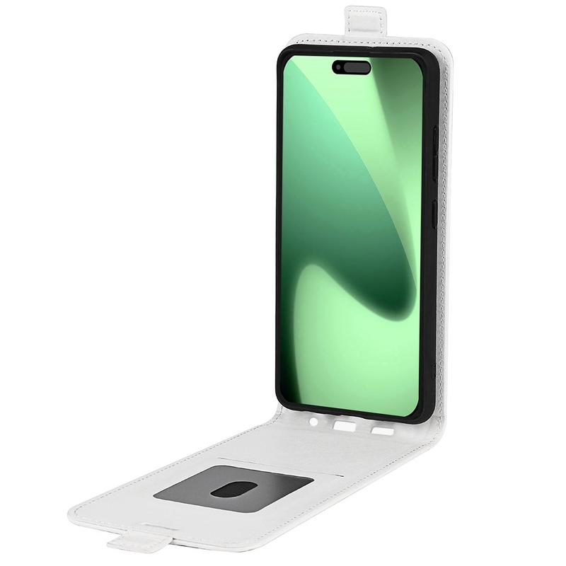 - Esta capa flip vertical de qualidade para iPhone 17 Pro é feita de poliuretano e TPU