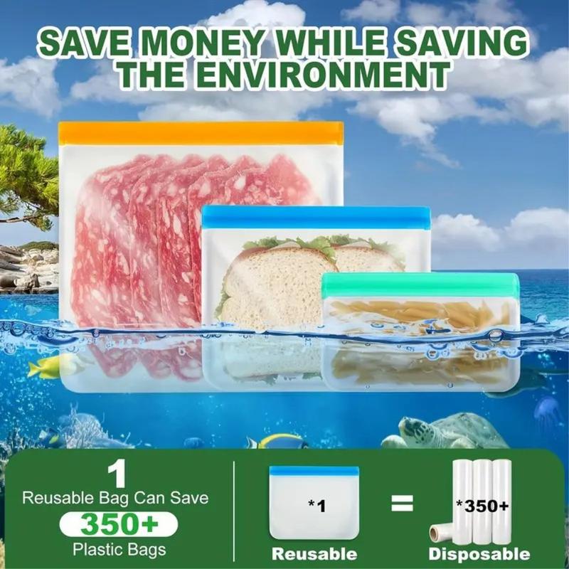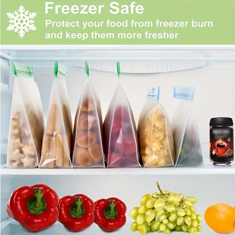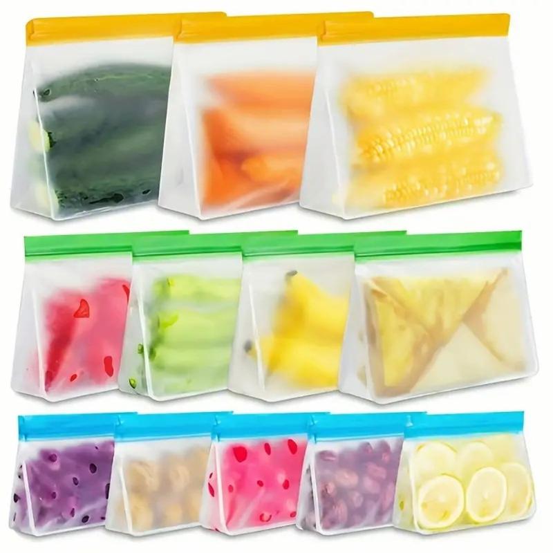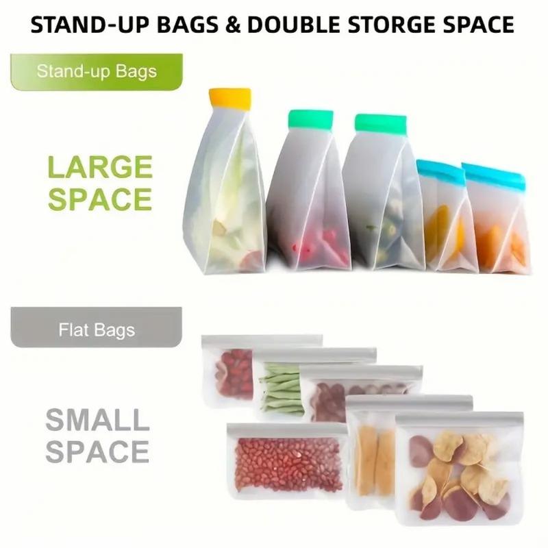 - Conjunto de 10 sacos de armazenamento PEVA reutilizáveis nos tamanhos S/M/L.
