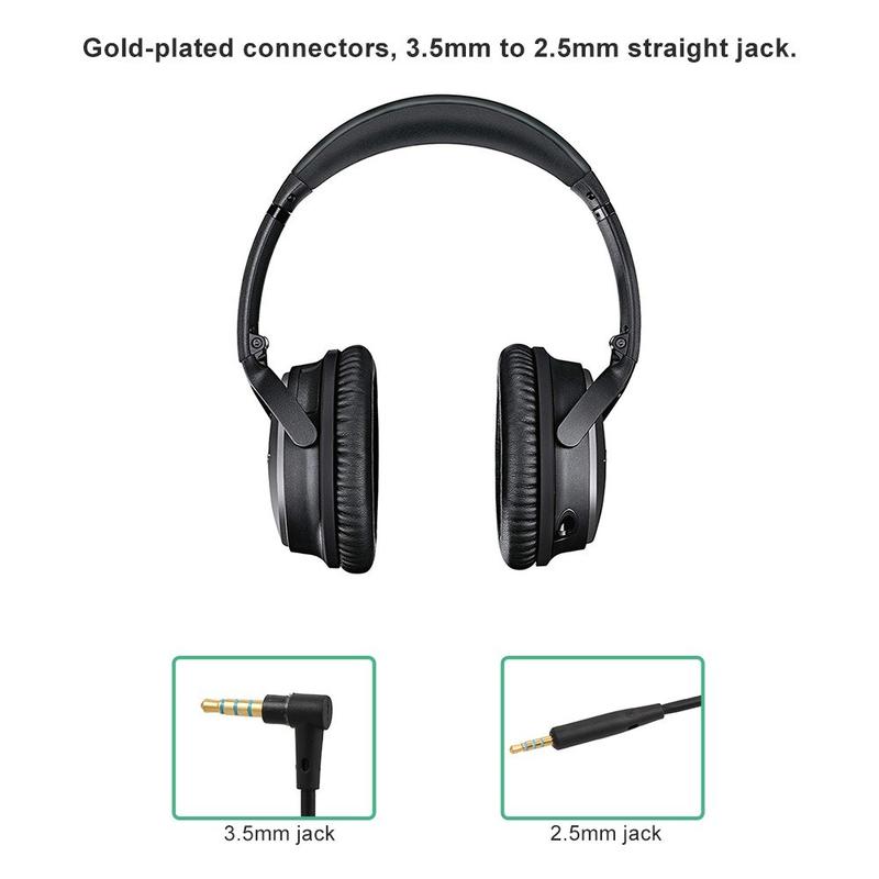 Este cabo de áudio de controlo de linha é perfeitamente adequado para os auscultadores BOSE QC25. Conectores banhados a ouro, conetor reto de 3.5mm a 2.5mm, durável e estável. O microfone incorporado e a função de controlo da linha de volume tornam-no conveniente para utilização. O material do cabo TPE de alta qualidade pode ajudar a prolongar a vida útil e a não emaranhar. Tem também uma excelente qualidade de som e uma elevada tolerância ao frio. Além disso, o comprimento do cabo de 140 cm é suficiente para a sua utilização diária. Este é definitivamente o melhor companheiro para os seus auscultadores BOSE QC25.