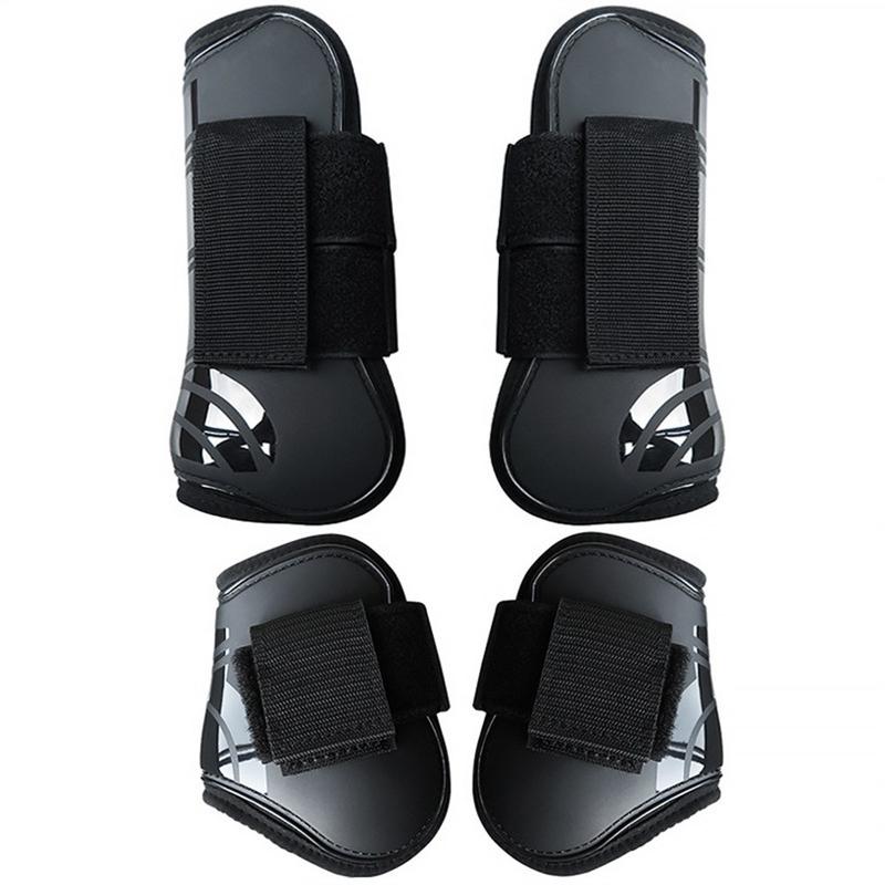 O treino de saltos a sério exige uma proteção fiável das pernas. Este conjunto de botas de grandes dimensões amortece os tendões dianteiros e os boletos traseiros, espalha o impacto em caso de queda de um poste e mantém-se firmemente no lugar graças às correias largas e resistentes de gancho e laço.