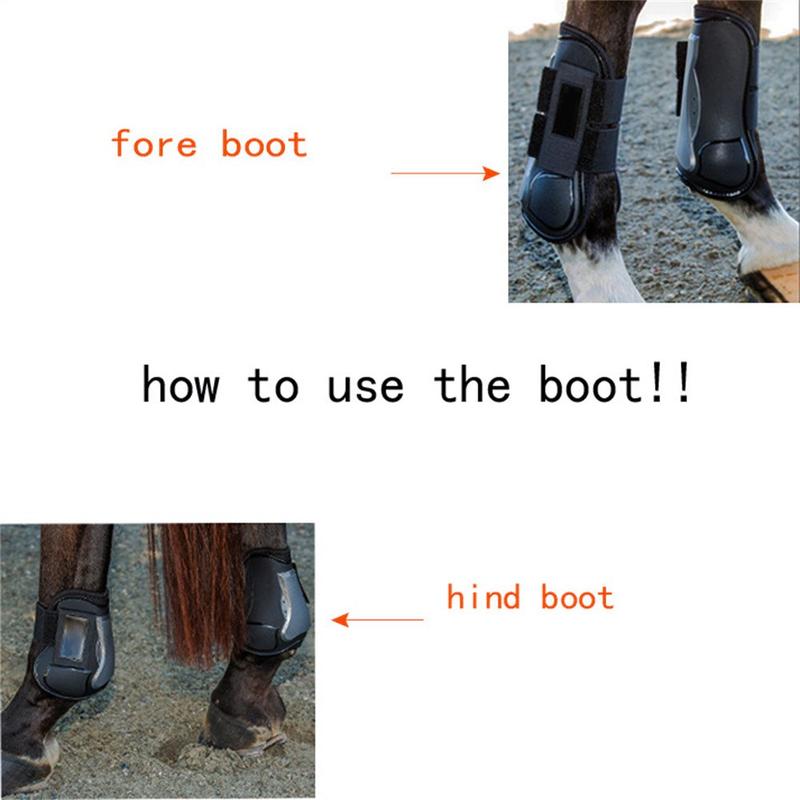 - Forma anatómica: botas dianteiras 255 x 112 mm para cobertura dos tendões; botas traseiras 158 x 118 mm protegem a articulação do boleto posterior.
