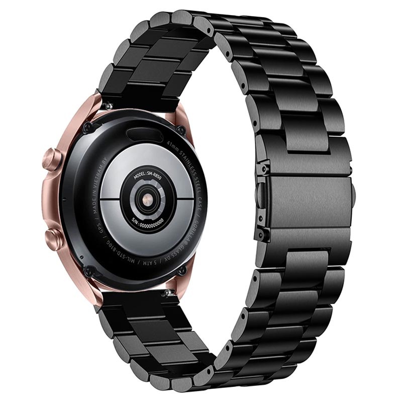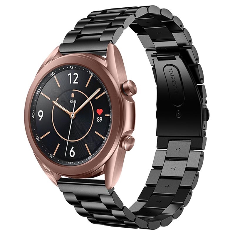 Uma bracelete de substituição ideal para o Samsung Galaxy Watch3, que é adequada para ocasiões desportivas e elegantes. Esta bracelete de aço inoxidável apresenta uma clássica fivela dobrável para uma operação conveniente.