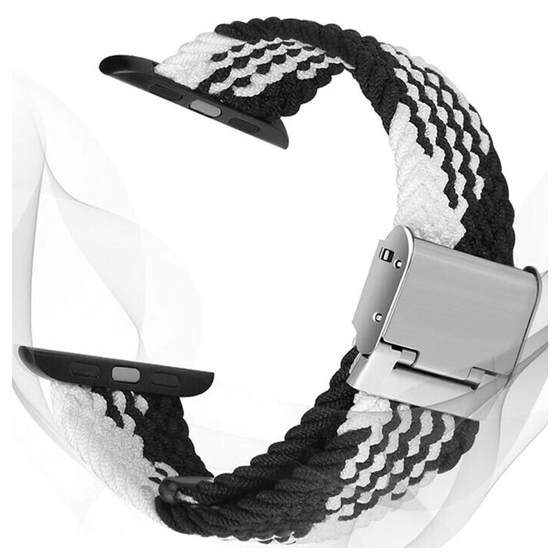Personalize o seu Apple Watch Series Ultra 3/2/Ultra/11/10/9/8/SE 3/(2022)/7/SE/6/5/4/3/2/1 com esta bracelete de tecido entrançado colorido. A bracelete é ajustável com uma fivela que se adapta perfeitamente a diferentes larguras de pulso. As fibras são resistentes ao suor.