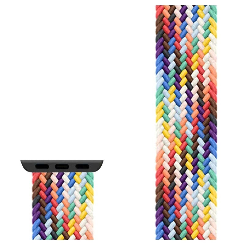 Personalize o seu Apple Watch Series Ultra 3/2/Ultra/11/10/9/8/SE 3/(2022)/7/SE/6/5/4/3/2/1 com esta bracelete de tecido entrançado colorido. A bracelete é ajustável com uma fivela que se adapta perfeitamente a diferentes larguras de pulso. As fibras são resistentes ao suor.