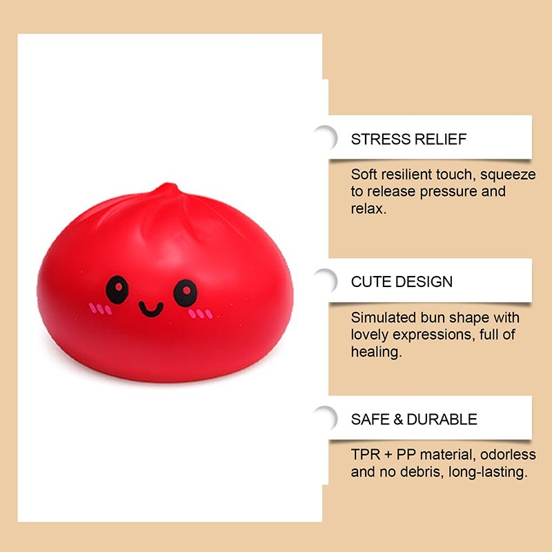 Brinquedo anti-stress em forma de pãozinho vermelho cozido no vapor - Brinquedo fofinho e macio em TPR, ideal para casa, escritório e estudo