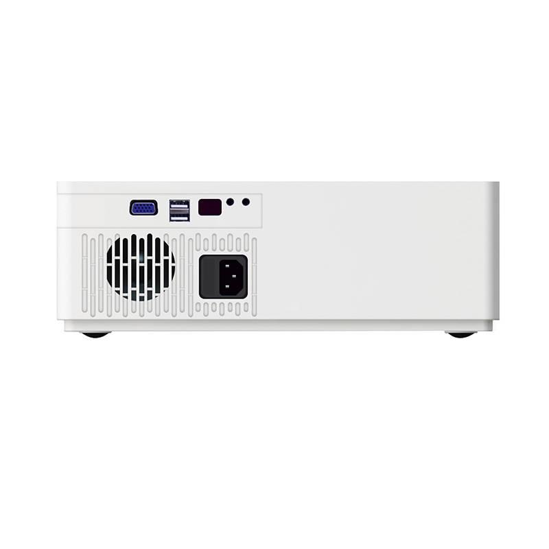 O projetor BYINTEK K20 Basic está equipado com uma função de correção trapezoidal, para que possa corrigir erros cometidos durante a configuração do dispositivo. Tem também à sua disposição um zoom eletrónico, bem como várias portas, tais como HDMI, AV, Mini Jack 3,5 mm, SD, USB 2.0 e VGA.