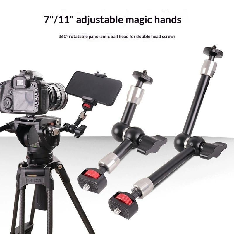 C119 Suporte com braço articulado de 11" - Cabeça dupla ajustável com rosca de 1/4" para câmaras, telemóveis, microfones e tripés