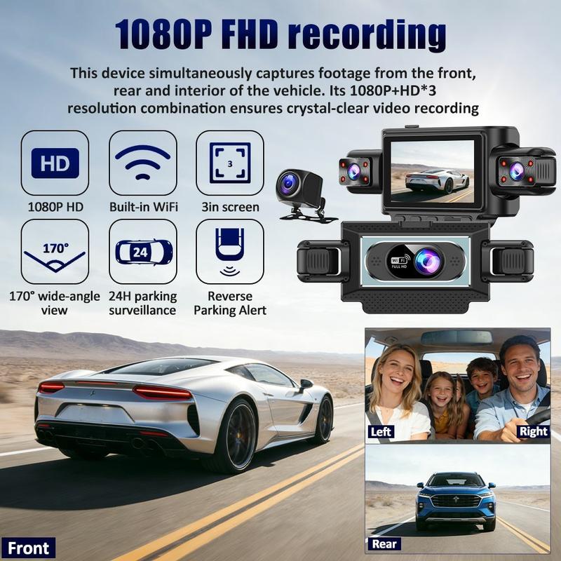 Obtenha uma cobertura mais ampla da estrada e mais tranquilidade com o sistema de câmara de bordo WiFi de 4 canais C313. Concebido para gravar vários ângulos ao mesmo tempo, capta imagens frontais, da esquerda, da direita e traseiras para ajudar a reduzir os ângulos mortos e documentar o que acontece à volta do seu veículo de forma mais clara do que uma câmara de bordo padrão de lente única. A configuração da câmara grande angular e o conceito de cobertura de 360 graus tornam-na uma escolha prática para a condução diária, proteção de estacionamento e manobras mais apertadas em ruas movimentadas ou parques de estacionamento.