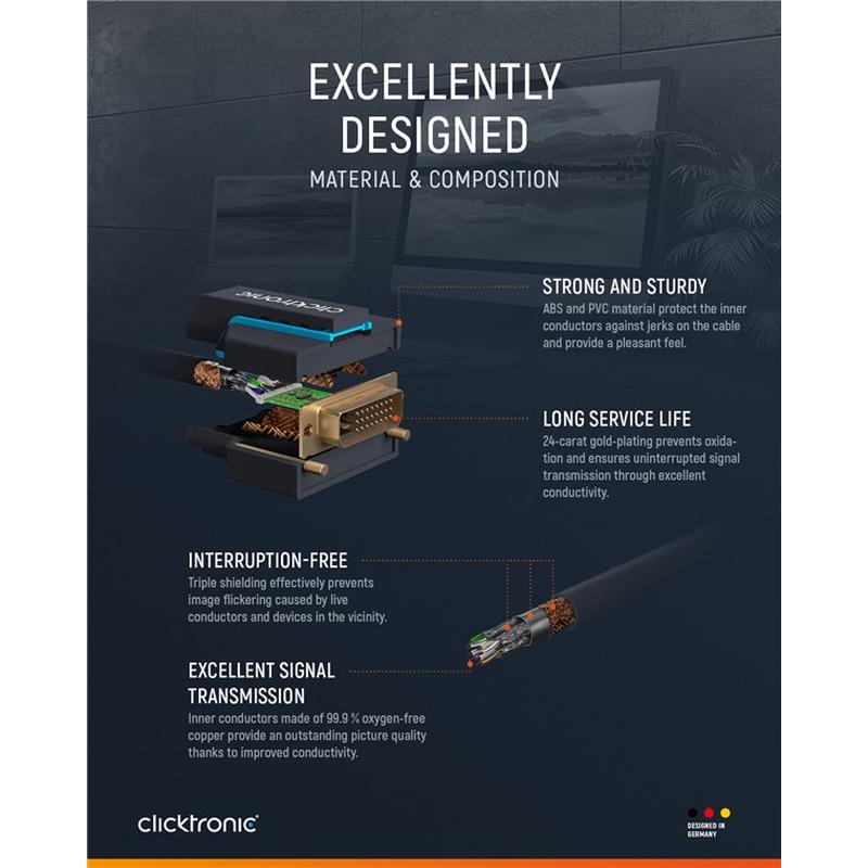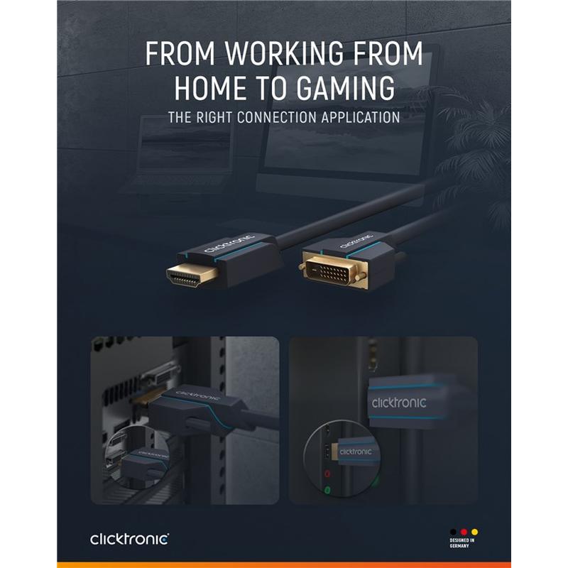 O cabo DVI-D até HDMI™ é ideal para um monitor ansluta até a mídia subjacente, t.ex. espeldadores, espelículas ou Blu-Ray-spelare. Överför digitala ljudoch- videosignaler i båda riktningarna, t.ex. desde a conversão até o monitor, a conversão de sinal UHD com WQXGA a 60 Hz (1600p) e Full HD a 60 Hz (1080p), a conexão HDMI™ com a máxima transferência de sinal até 4,95 Gbit/s, interface HDMI™ de 24 quilates e a tecnologia avançada garante a qualidade do sinal de felfri em um nível de suporte ideal. 2-faldig skärmning och innerledare av 99,9% syrefri koppar for kristallklart ljud e knivskarp video- och bildkvalitet, Flexibelt böjskydd och robusto PVC-kabelhölje gör att anslutningskabeln kan böjas utan att skadas.