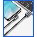 O cabo angular Ugreen USB - USB Tipo C 2m 3A é um cabo USB com uma ficha USB Tipo C dobrada num ângulo de 90 graus, o que o torna perfeito para utilização em espaços apertados ou para segurar o telemóvel na horizontal enquanto joga. O cabo foi concebido para um carregamento rápido, com tecnologia Quick Charge 3.0, e a ficha lateral reduz o risco de danificar o cabo, aumentando o conforto durante a utilização. Fabricado em TPE de alta qualidade e colocado numa forte trança de nylon e linha de pesca, este cabo é durável e não se emaranha. A corrente de 3 A e um fio de cobre estanhado garantem um carregamento instantâneo e seguro, e o cabo é compatível com todos os dispositivos com uma porta USB tipo C.