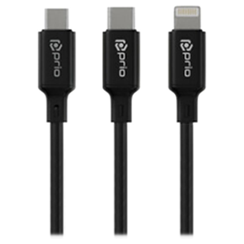 Cabo de Carregamento 3 em 1 Prio High-Speed - 2m - Preto
