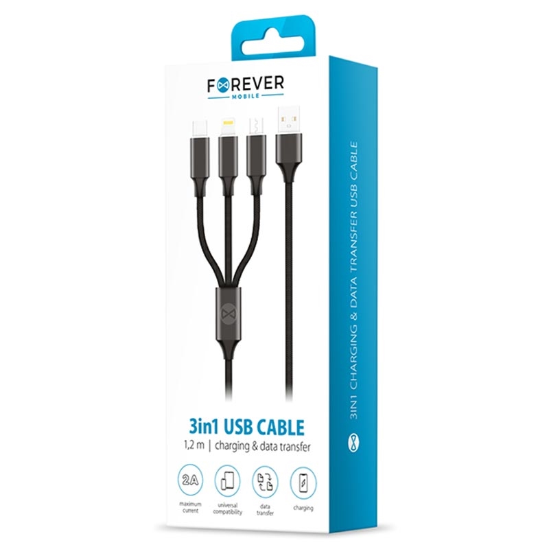 - Cabo de carregamento USB 3 em 1 de alta qualidade da Forever