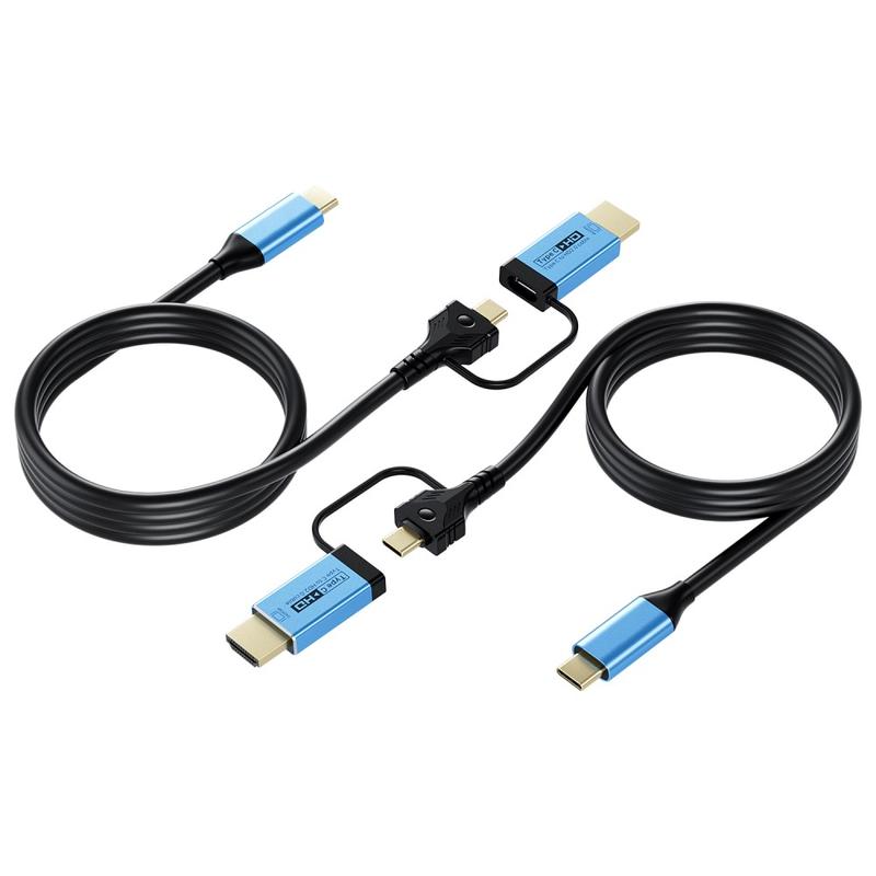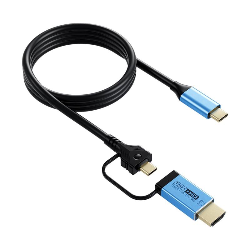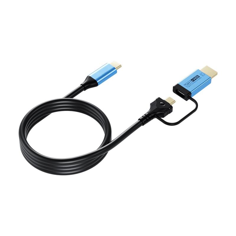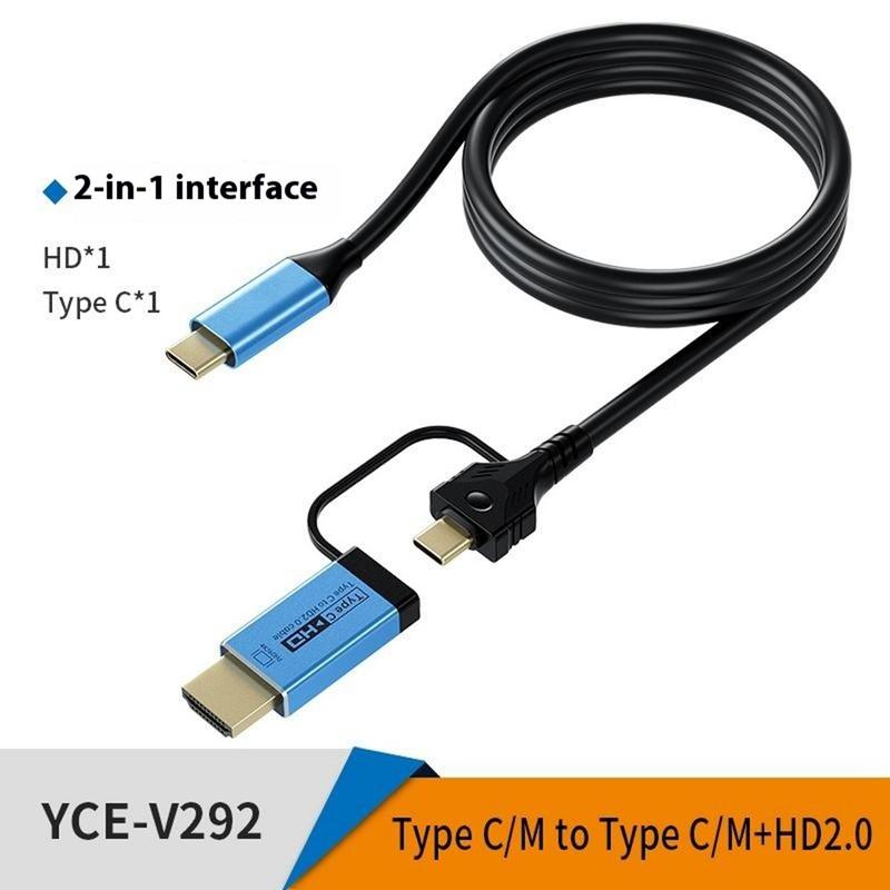 Cabo adaptador V292 4K 60Hz Tipo C para Tipo C + HDMI 2.0 - Conversor de dados e vídeo de alta velocidade em liga de alumínio 2 em 1
