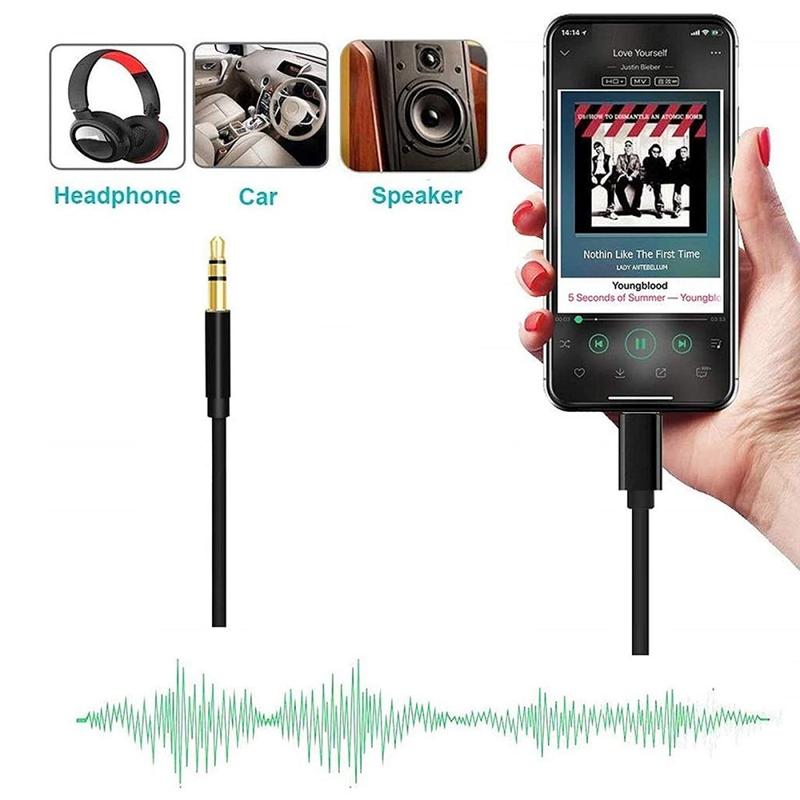 Utilize este conversor de cabo auxiliar para ligar o iPhone ao sistema estéreo de casa/carro/computador, auriculares, Bluetooth, altifalantes e desfrute de música de alta qualidade em qualquer altura (não suporta a função de chamada)