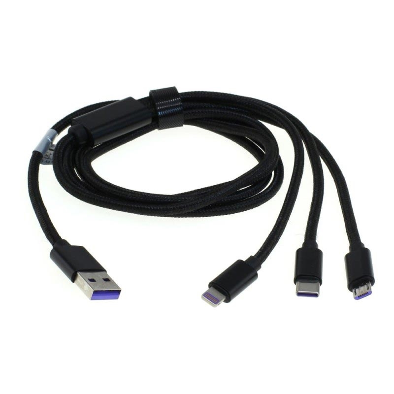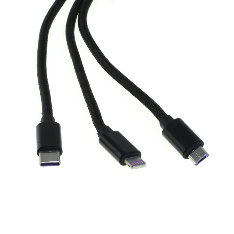 Cabo de carregamento OTB 3 em 1 - USB-A para Lightning, USB-C, MicroUSB - 1m