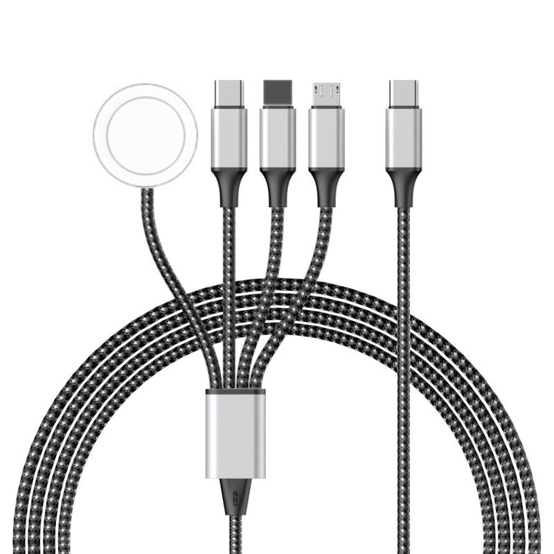 Cabo de carregamento entrançado 4 em 1 - Type-C, Lightning, Micro USB, Apple Watch