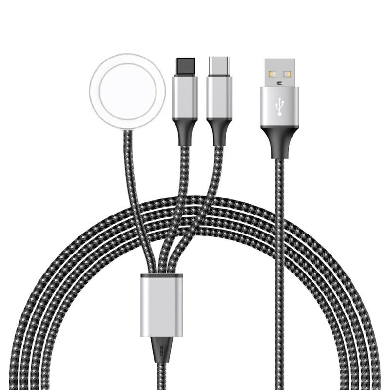 Cabo de carregamento entrançado 3 em 1 - Type-C, Lightning, Apple Watch