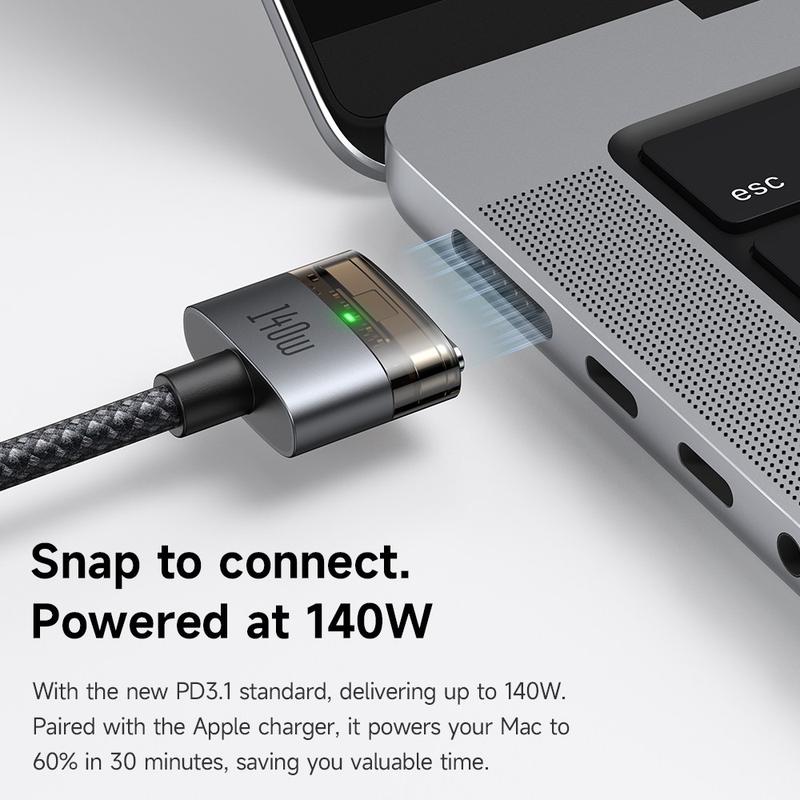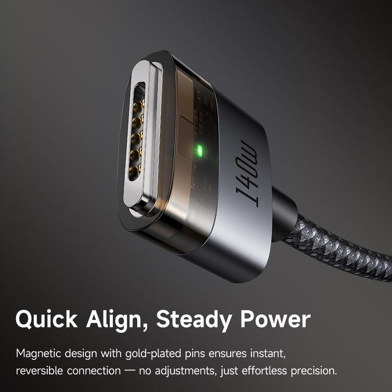 Carregue os seus dispositivos de forma mais rápida e inteligente com o MCDODO CA-207. Com suporte de fornecimento de energia de 140W, este cabo foi concebido para fornecer um carregamento estável e eficiente aos seus dispositivos Apple, incluindo MacBooks e iPhones, com a conveniência adicional de alinhamento magnético para uma ligação instantânea.
