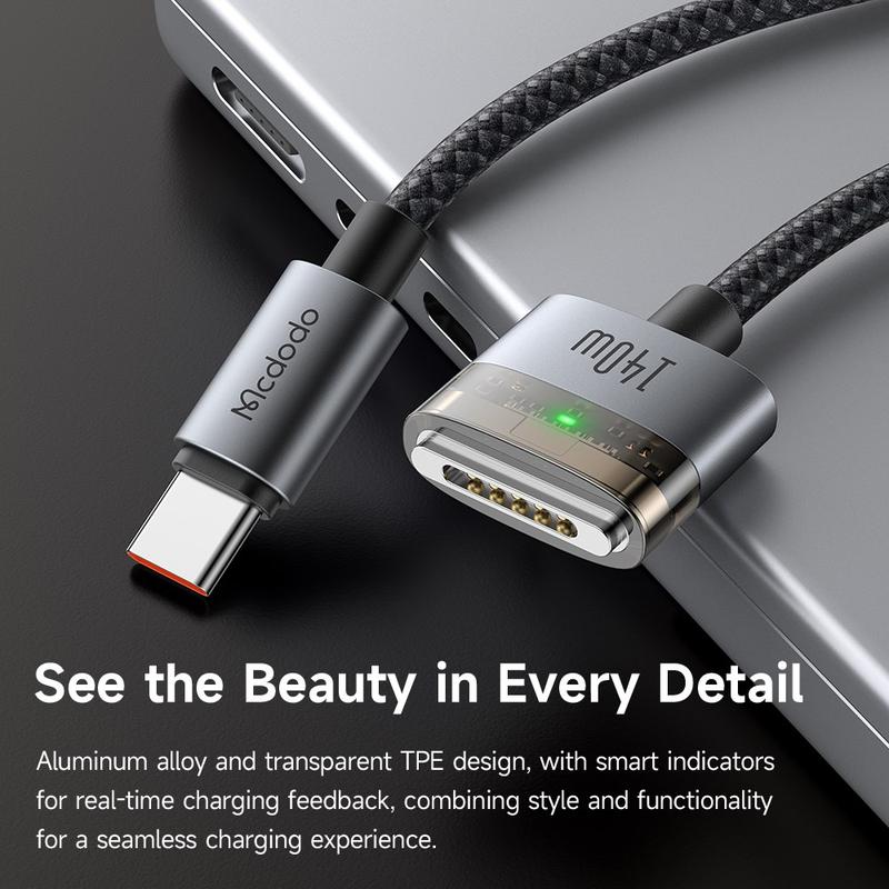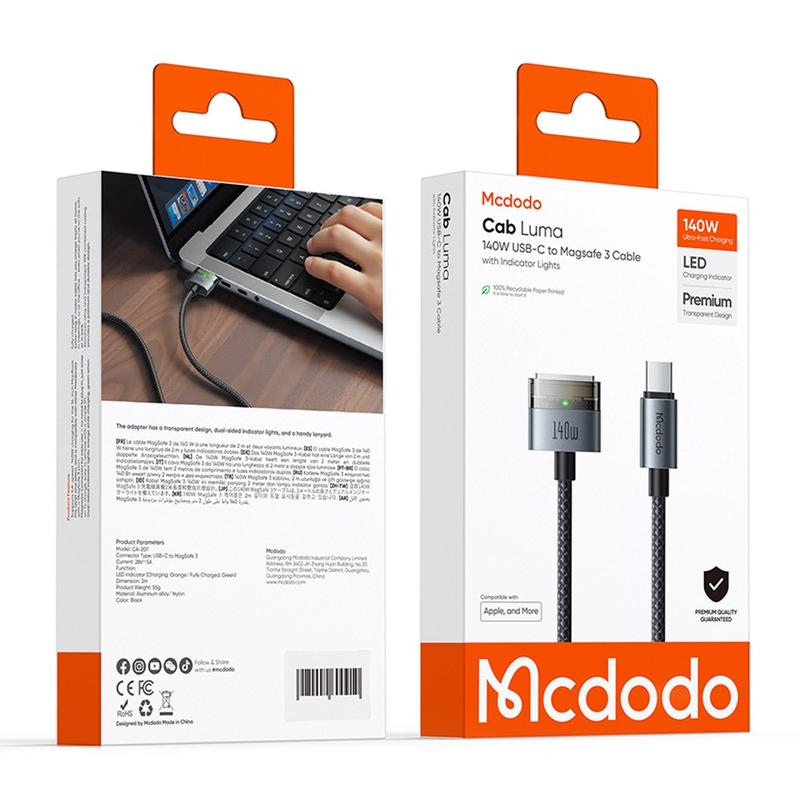 Cabo de carregamento Mcdodo CA-207 140W USB-C para MagSafe 3 - 2m - Nylon Braided com luz indicadora