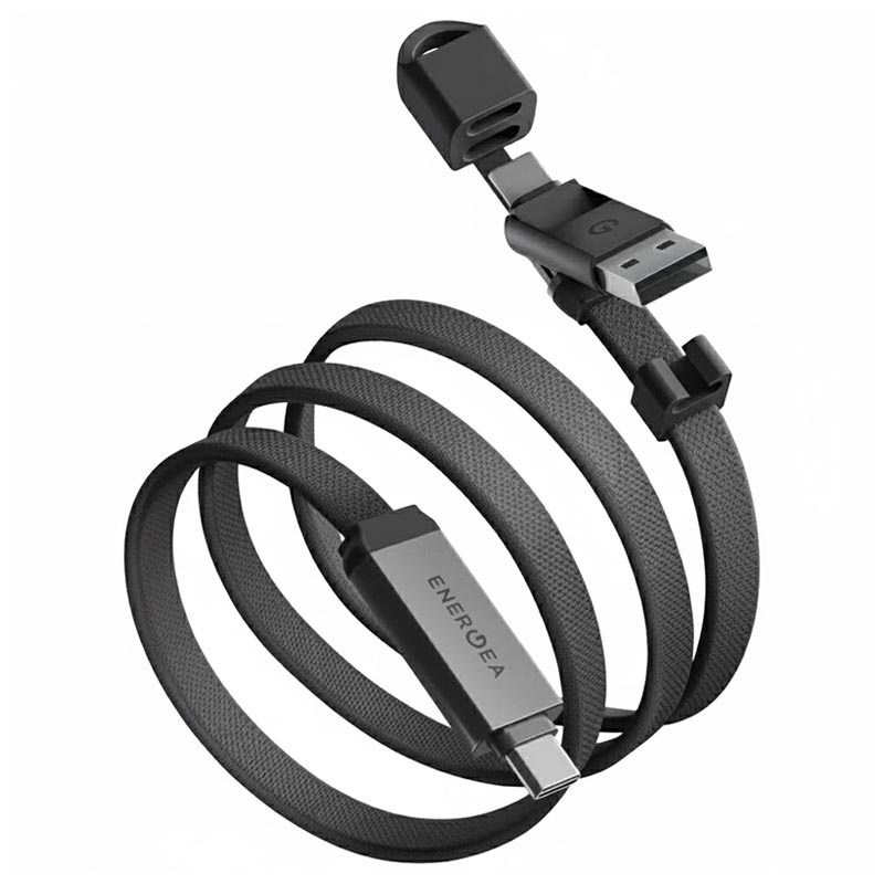 Cabo de carregamento e dados 2 em 1 Energea Sheath Travel - Carregamento rápido de 60W, conectores intercambiáveis USB-C/USB-A, cabo entrançado de 1.2m