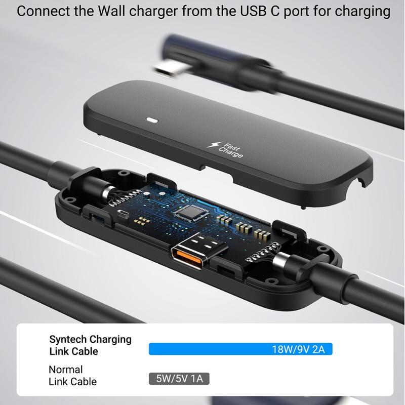 Jogue mais tempo em RV sem se preocupar com o consumo da bateria. O Syntech M32C1-5 é um cabo de ligação RV de 5m concebido para Meta Quest 3S, Quest 3 e Quest 2, combinando dados USB 3.0 de alta velocidade com uma porta de carregamento dedicada de 18 W. Isto permite-lhe manter uma ligação com fios estável ao seu PC para PCVR enquanto carrega os auscultadores ao mesmo tempo, para que possa permanecer no jogo durante sessões prolongadas.