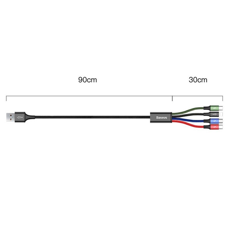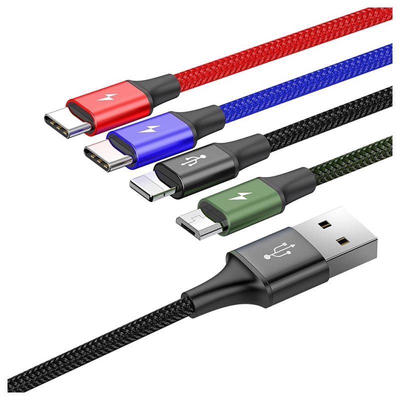 Cabo de Dados e Carregamento 4 em 1 Baseus Rapid Series - Lightning, MicroUSB, 2xUSB-C