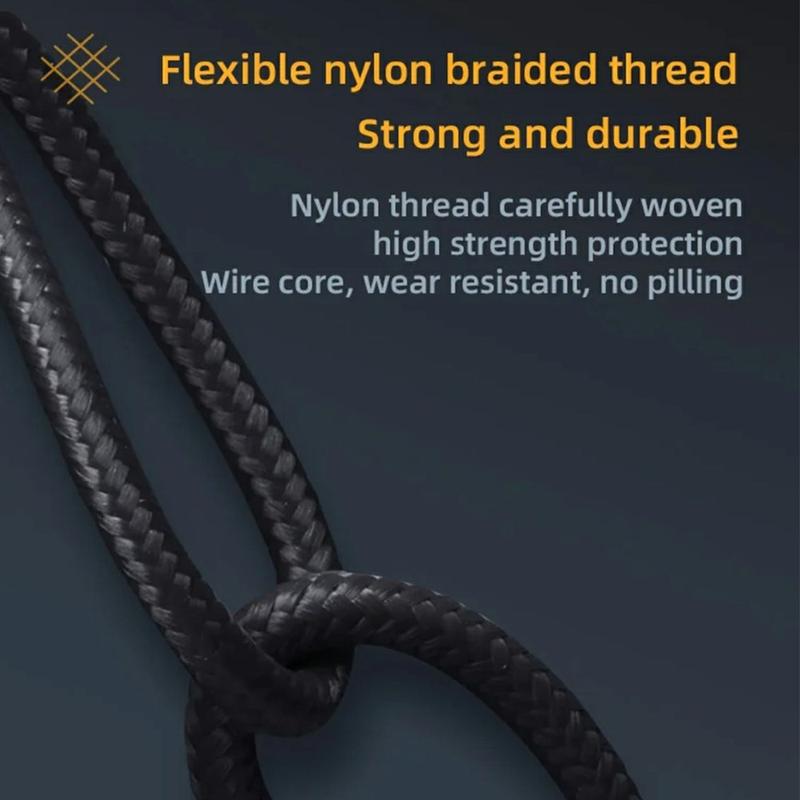 - Cabo trançado de nylon durável para melhor resistência ao desgaste e menos emaranhamento