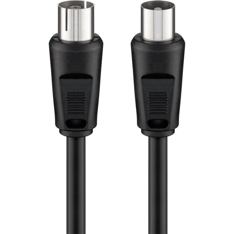Dubbelskärmad satellitkabel för störningsfri överföring, Gjuten plugg på båda sidor för att skydda mot damm, smuts och mekaniska påfrestningar, Förnicklade, precisionsanpassade kontakter, För anslutning av enheter med en koaxial anslutning, t. ex. TV-apparater, mottagare och radioapparater