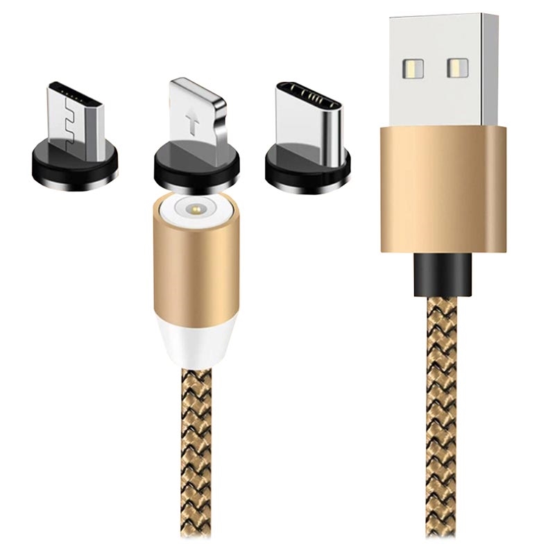 Carregue facilmente quase qualquer dispositivo moderno graças a este cabo magnético de LED 3 em 1. Reforçado com nylon trançado, a vida útil do cabo é estendida, tornando-o resistente a torções. O design magnético permite fácil encaixe em qualquer ângulo, tornando-o conveniente para o uso do carro. Verifique o status de carregamento ou transferência de dados em uma luz LED.
