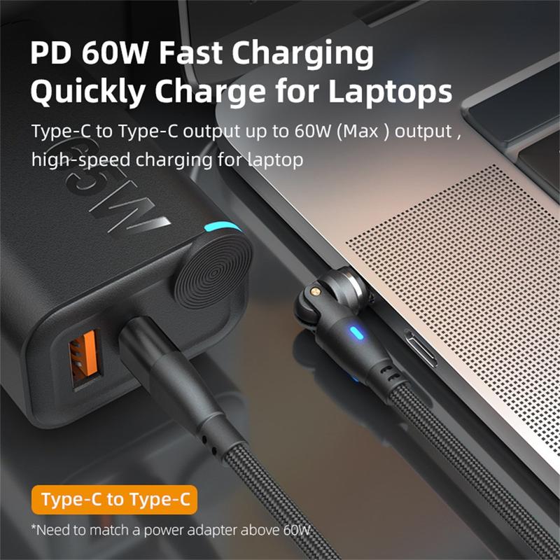 Cabo magnético E9 USB-C para USB-C de 1 m - Carregamento rápido PD de 60 W e dados USB 2.0, rotação de 540 graus, trançado em nylon