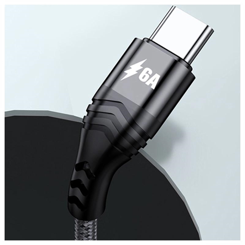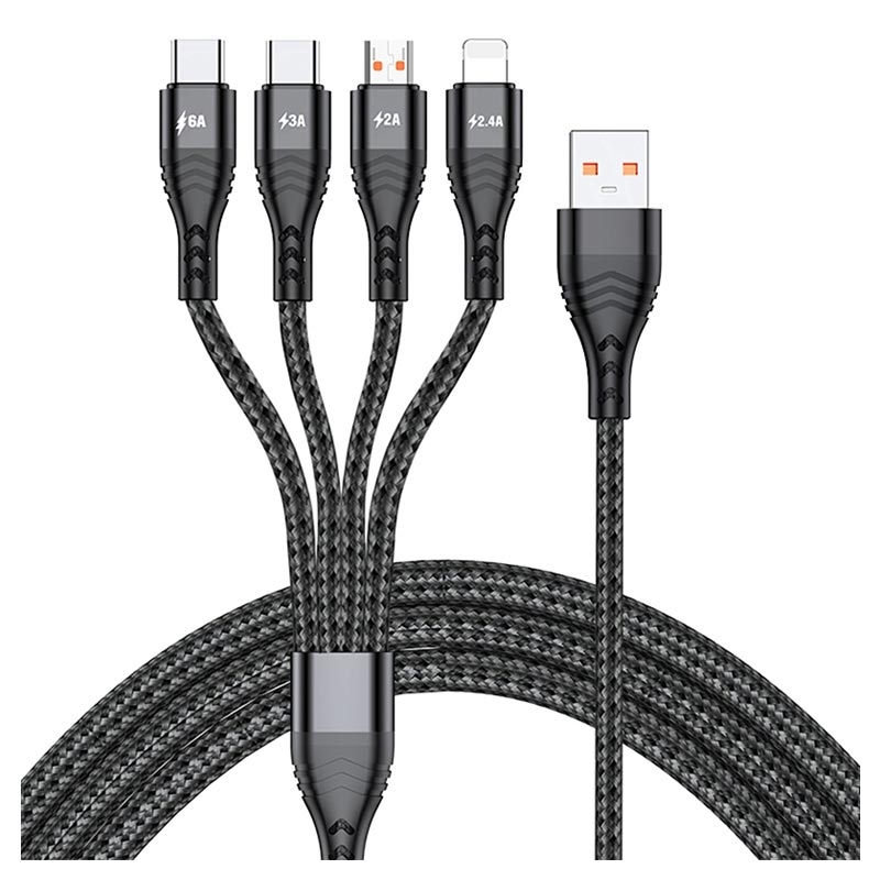 Cabo USB 4 em 1 universal trançado de náilon - 6A USB-C, 3A USB-C, 2,4A Lightning, 2A MicroUSB - 66W, 2m