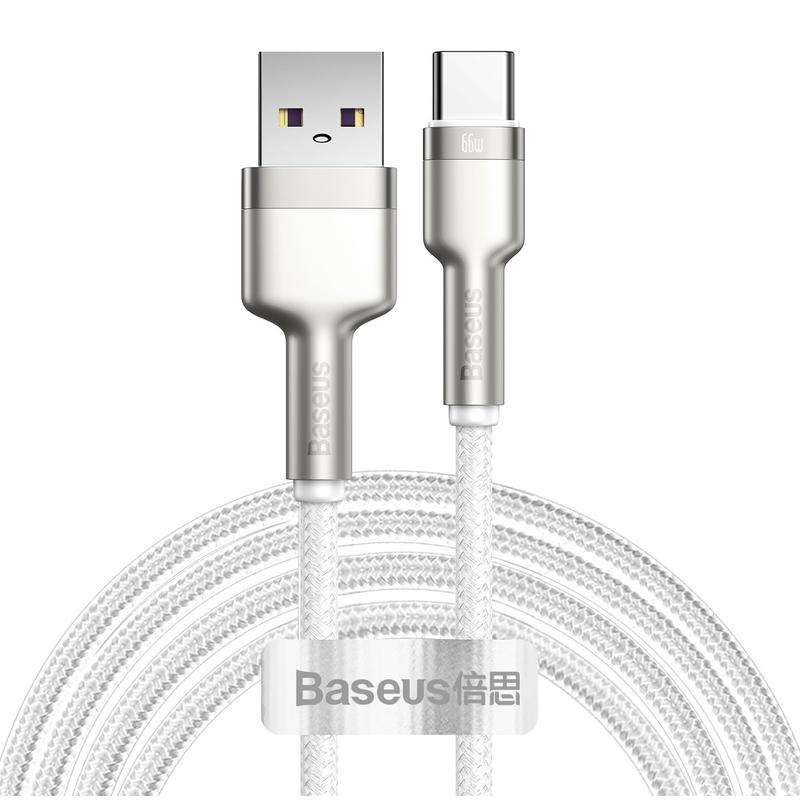 Cabo USB-A para USB-C Baseus Cafule Metal Series - Carregamento rápido de 66W, cabo de dados entrançado em nylon de 2m