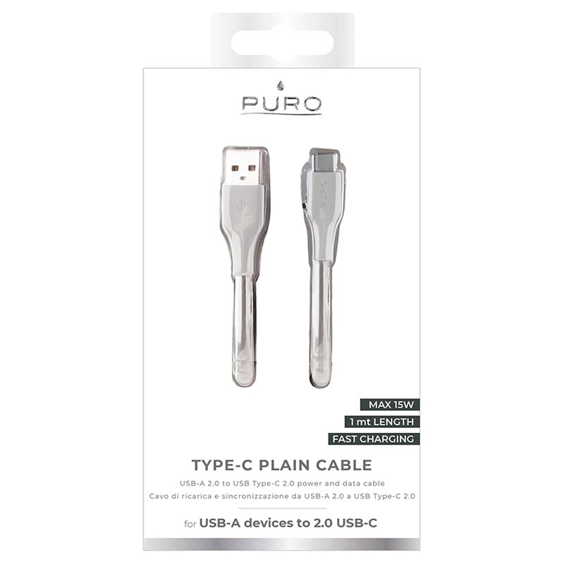 Cabo USB-A/USB-C Puro Plain - 1m, 15W - Branco