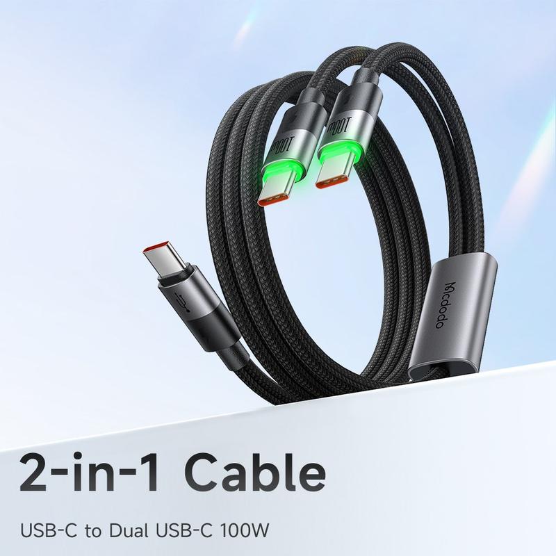 Cabo USB-C 2 em 1 Mcdodo CA-6740 com carregamento rápido de 100W, luz LED - 1.5m