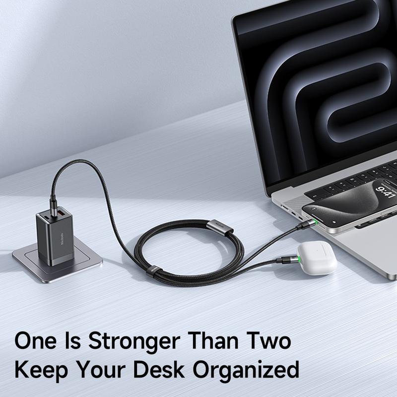 Um cabo que faz o trabalho de dois significa menos confusão, menos acessórios esquecidos e menos lixo eletrónico. A sua robusta classificação de 100W protege a sua configuração contra computadores portáteis da próxima geração, enquanto a divisão inteligente mantém os dispositivos actuais seguros. Se considerarmos o trançado robusto, teremos anos de serviço fiável, sem necessidade de substituições baratas.
