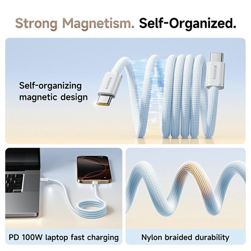 Melhore a sua rotina de carregamento com o cabo BASEUS Dynamic 4 Pro Tipo C para Tipo C. Com um design inteligente de auto-organização magnética e fornecimento de energia de 100 W, este cabo proporciona um carregamento rápido e sem complicações para computadores portáteis, smartphones e muito mais. A construção entrançada de nylon durável garante uma fiabilidade duradoura, enquanto o comprimento compacto de 1metro é perfeito para viagens e utilização diária.