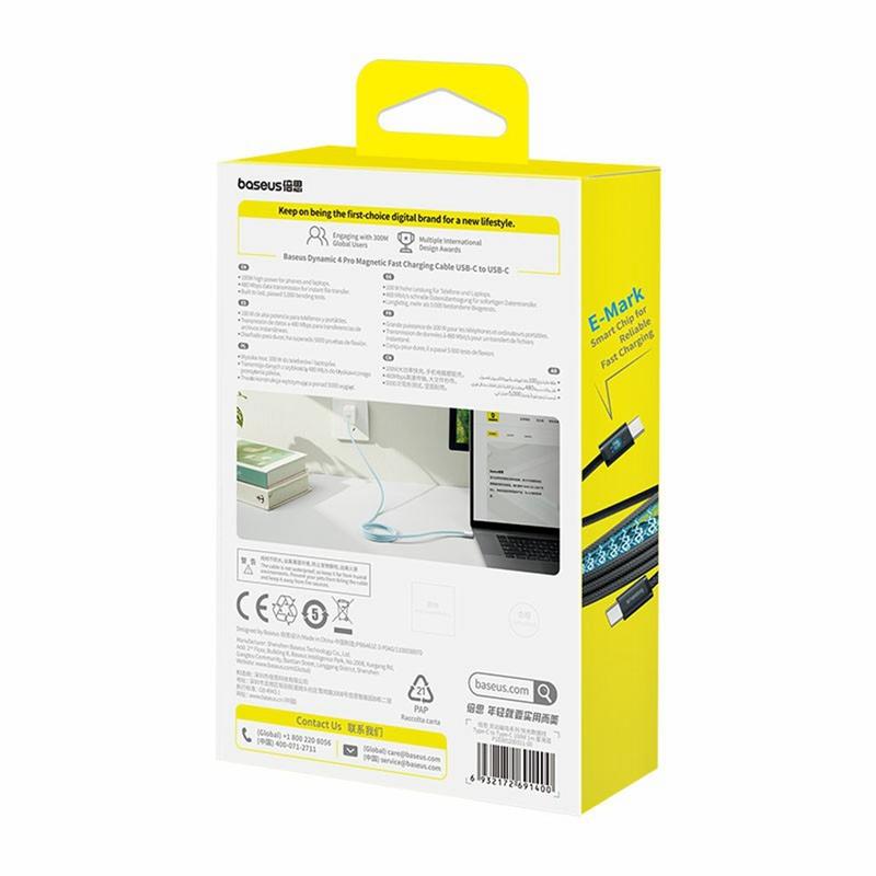 O cabo BASEUS Dynamic 4 Pro combina durabilidade, eficiência e inovação num único pacote elegante. Seu design magnético evita o emaranhamento, enquanto a saída de energia de 100W cobre todas as suas demandas de carregamento - seja no trabalho ou no lazer. Se precisa de uma solução fiável, rápida e sem complicações para os seus dispositivos USB-C, este cabo oferece conveniência e desempenho em igual medida.