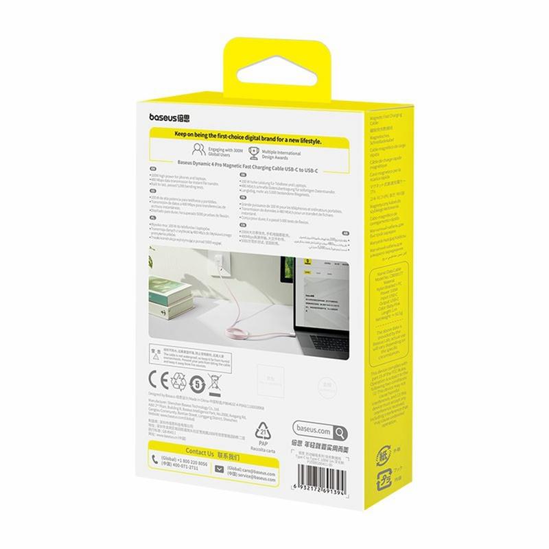 O cabo BASEUS Dynamic 4 Pro combina durabilidade, eficiência e inovação num único pacote elegante. Seu design magnético evita o emaranhamento, enquanto a saída de energia de 100W cobre todas as suas demandas de carregamento - seja no trabalho ou no lazer. Se precisa de uma solução fiável, rápida e sem complicações para os seus dispositivos USB-C, este cabo oferece conveniência e desempenho em igual medida.