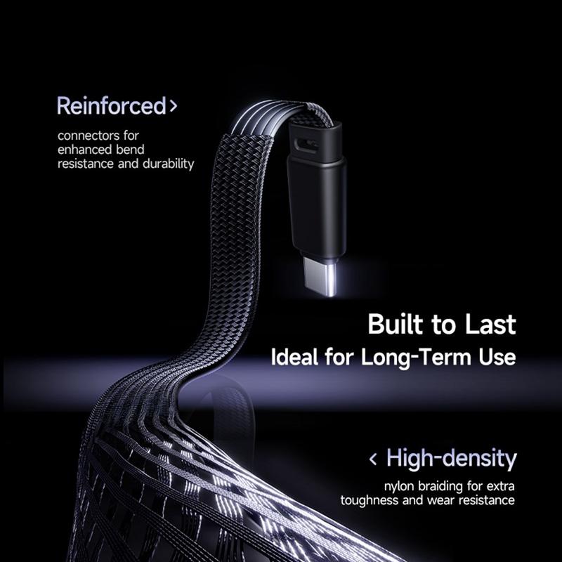 Os cabos com capacidade de carregamento de 100W são ideais para dispositivos que consomem muita energia, como computadores portáteis, oferecendo uma solução de carregamento versátil e preparada para o futuro.