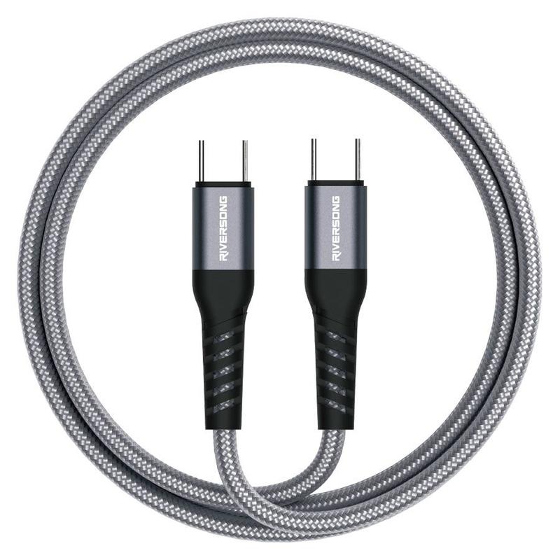 Melhore a sua experiência de carregamento com o cabo trançado de nylon de 1 m Riversong Hercules 06 - 100W USB-C para USB-C PD e desfrute de um fornecimento de energia eficiente e fiável para todos os seus dispositivos USB-C.